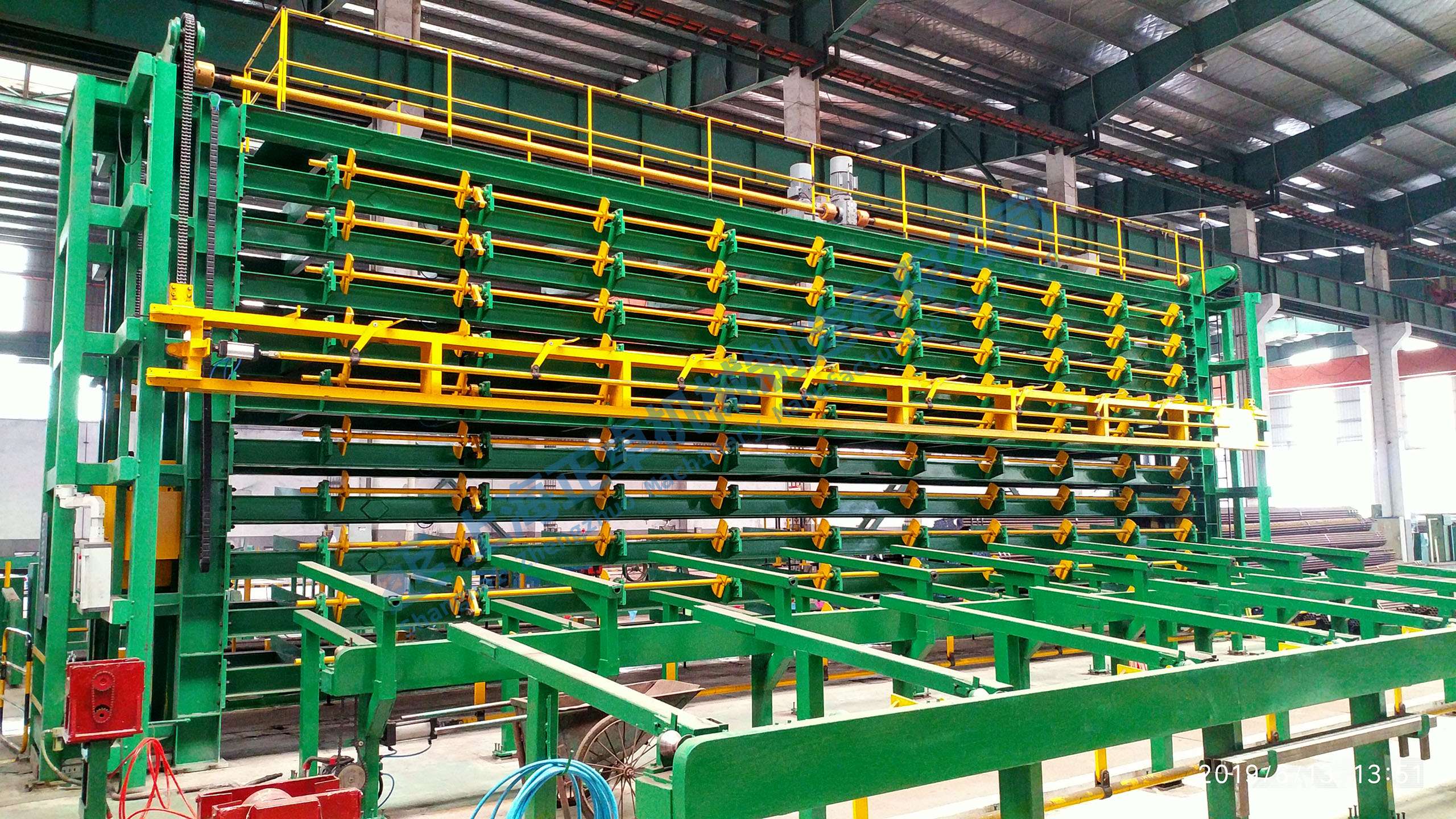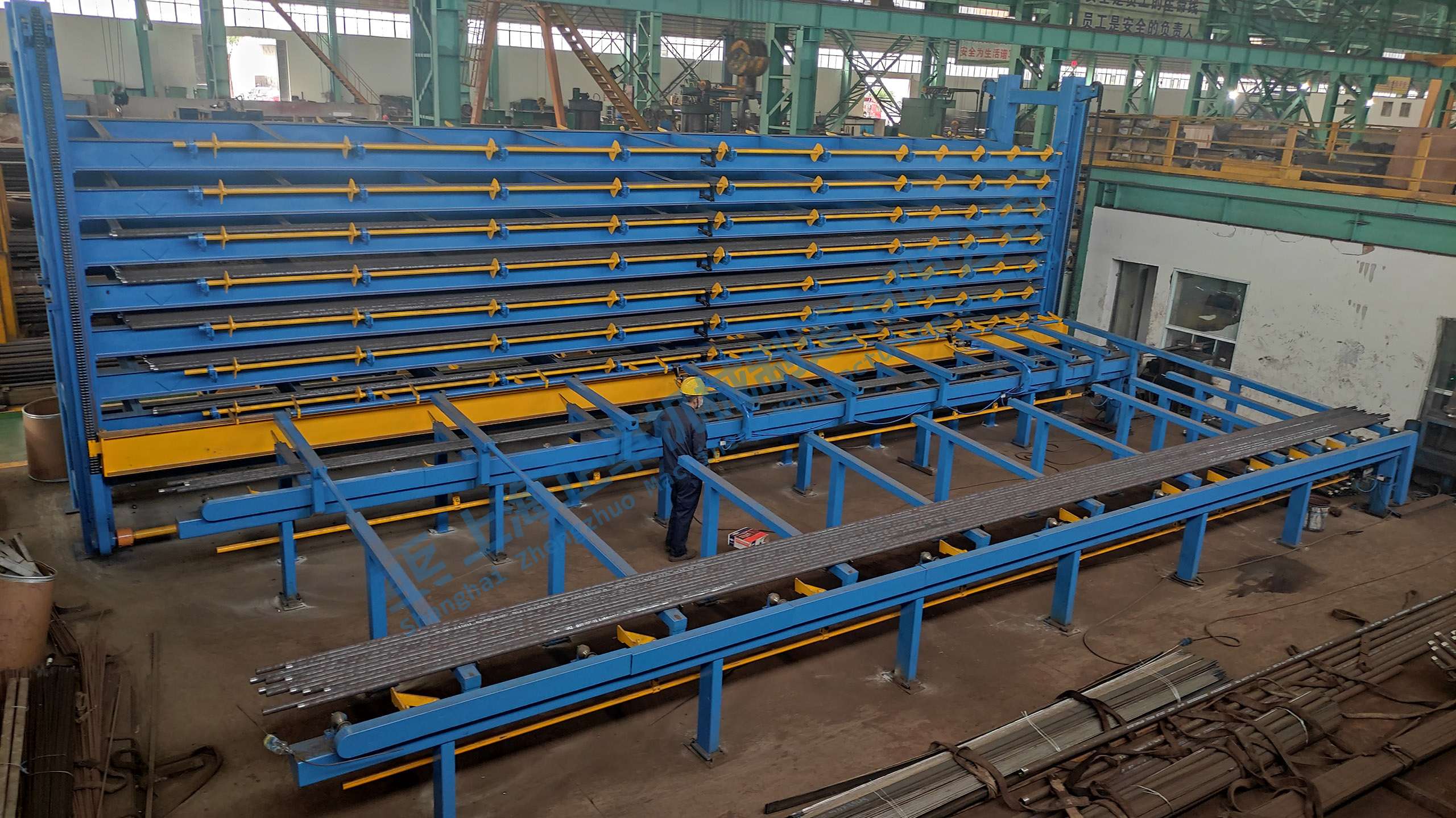 是直管對接焊前的專用料庫。配合焊前滾道,可實現兩台焊機的供料生産。